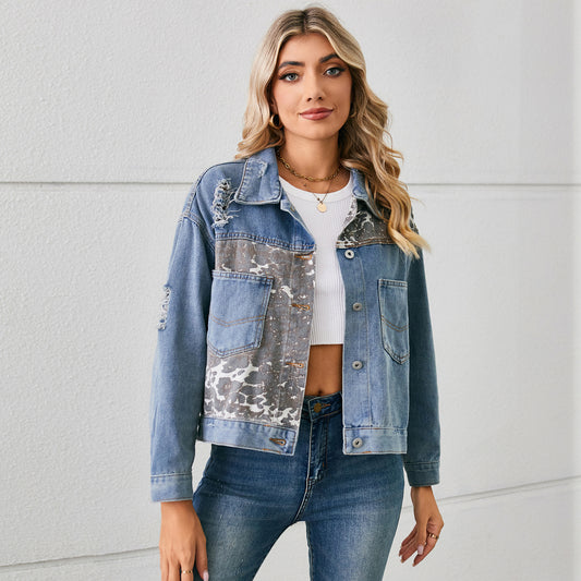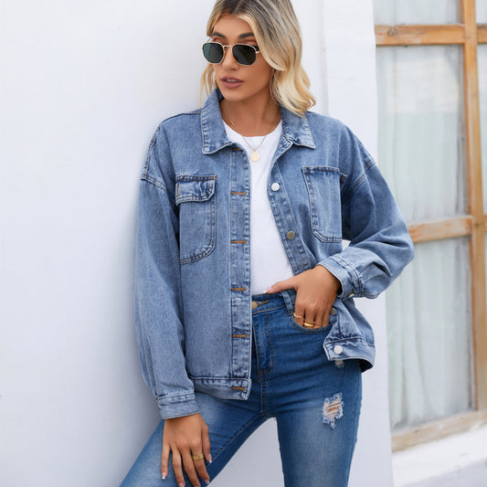 Oh Rare Women Spread Collar Denim Jacket