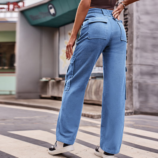 Oh Rare Women Versatile Straight Fit Denim Cargos Jeans