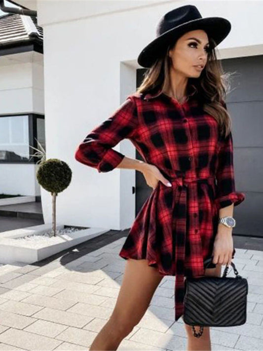 Oh Rare Womens Checks Shirt Plaid Mini Dress Red