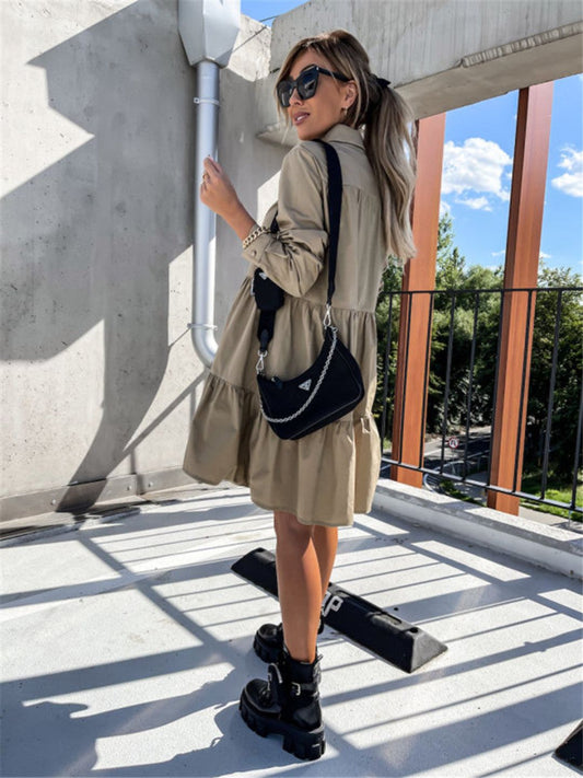 Oh Rare Womens Lapel Loose Shirt Mini Dress