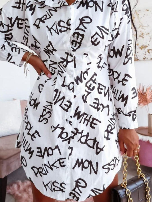 Oh Rare Womens Casual Short Long Sleeve Letter Print Slim Fit Mini Dress