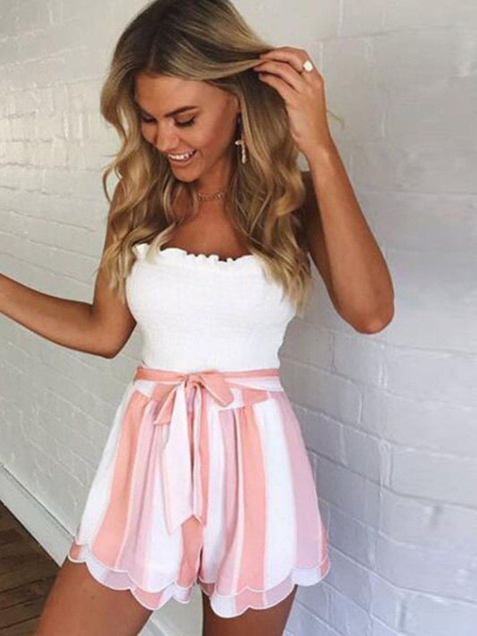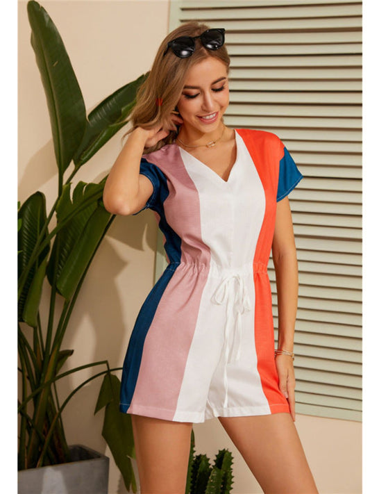 V-Neck Short-Sleeved Colourblocked Jumpsuit