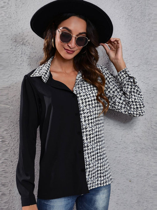 Women Abstract Printed Shirt Collar Long Sleeve Casual Shirt