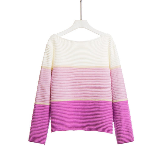Striped Contrast Color One-Shoulder Knitted Sweater