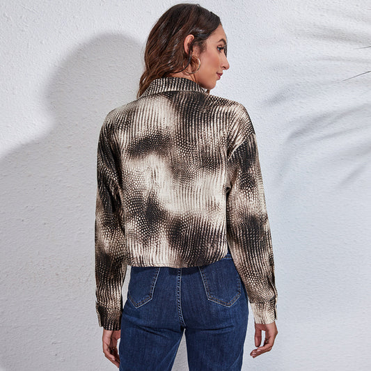 Women Checked Crop Tailored Snake Pattern Long Sleeve Jacket