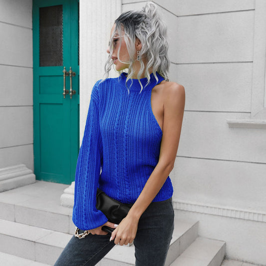 Women One-Shoulder Long-Sleeved Sweater Pullover