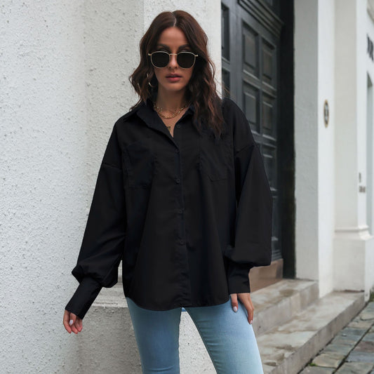Women Oversized Fit Spread Collar Solid Casual Shirt