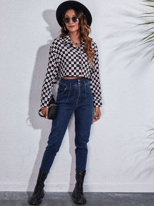 Women Skull Retro Polka Dot Long-Sleeved Round Neck Knitted Sweater Pullover
