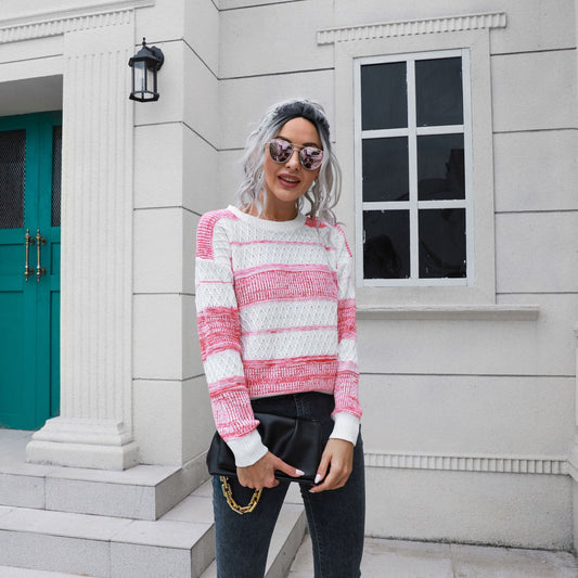 Women Striped Long-Sleeve Ribbed Pullover Sweater